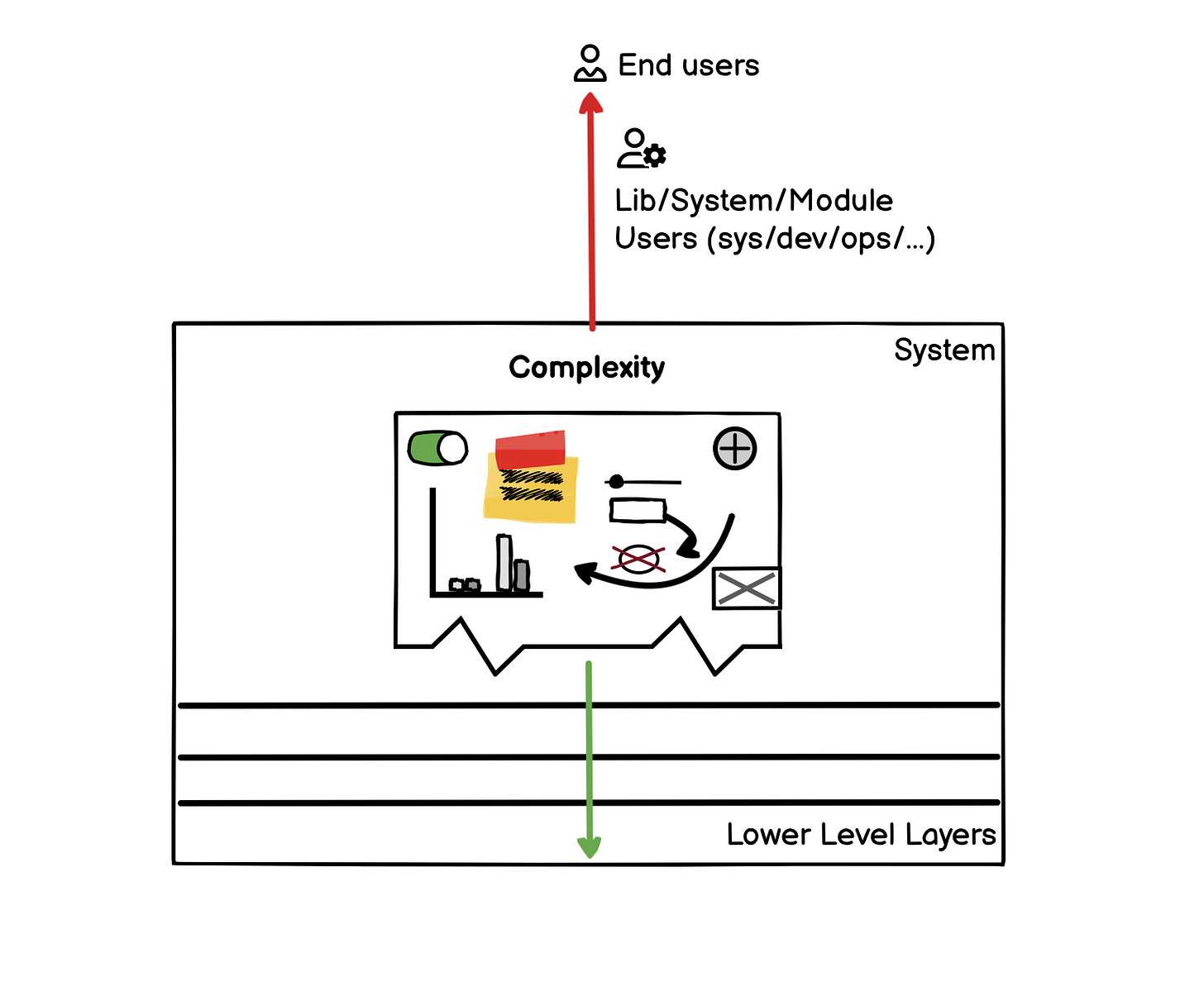 A crucial factor in this process is complexity management, and we understand that it is not always feasible to eliminate it entirely. Sometimes, it is inherent in the domain we operate in, or it arises from real-world scenarios. Additionally, in many 'fast-paced' work environments, those who contribute (directly or indirectly) to the design of a system are often rewarded for short-term choices rather than for long-term sustainability.