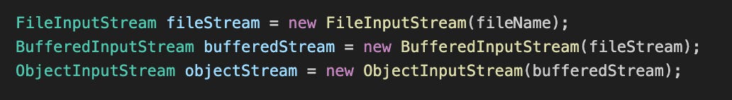 And this was the old/classic way in Java to open a file and read it into serialized objects: